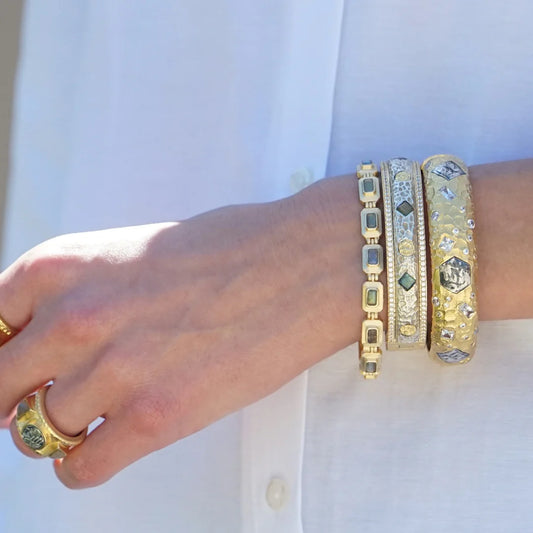 Gold & Satin Silver Labradorite Mota Coin Bangle