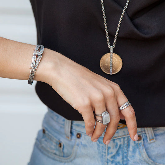 Vintage Silver Egy Crystal Line Bangle