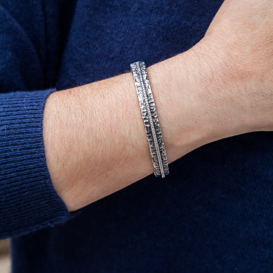 Vintage Silver Two-Tone Ravelle Thin Hammered Chain Bracelet