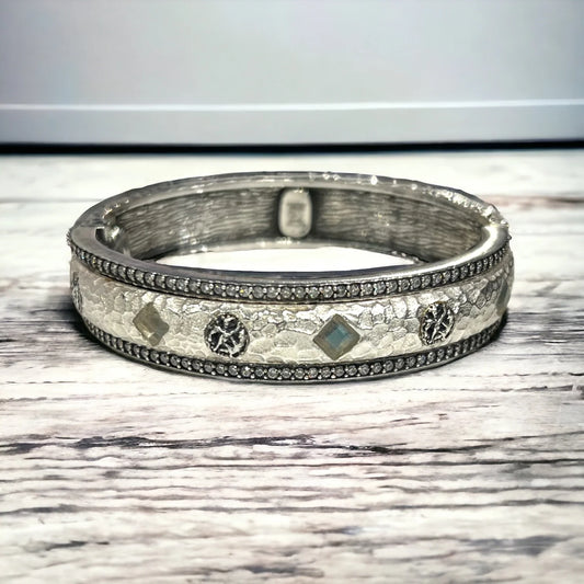 Gunmetal Rockove Crystal & Hammered Loop Bangle