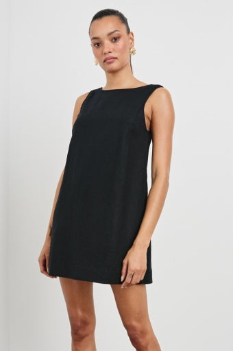 The Lindsey is a laid-back linen mini dress featuring a high neck and scoop back. Fully lined with a relaxed fit that lays just right.