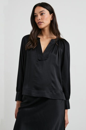 A classic blouse with elevated details, the Wynna is sure to be a go-to in your repertoire. Made from satin back crepe, it moves and shines with you. Complete with long sleeves, a v-neckline, and ruching at the sleeves and back.